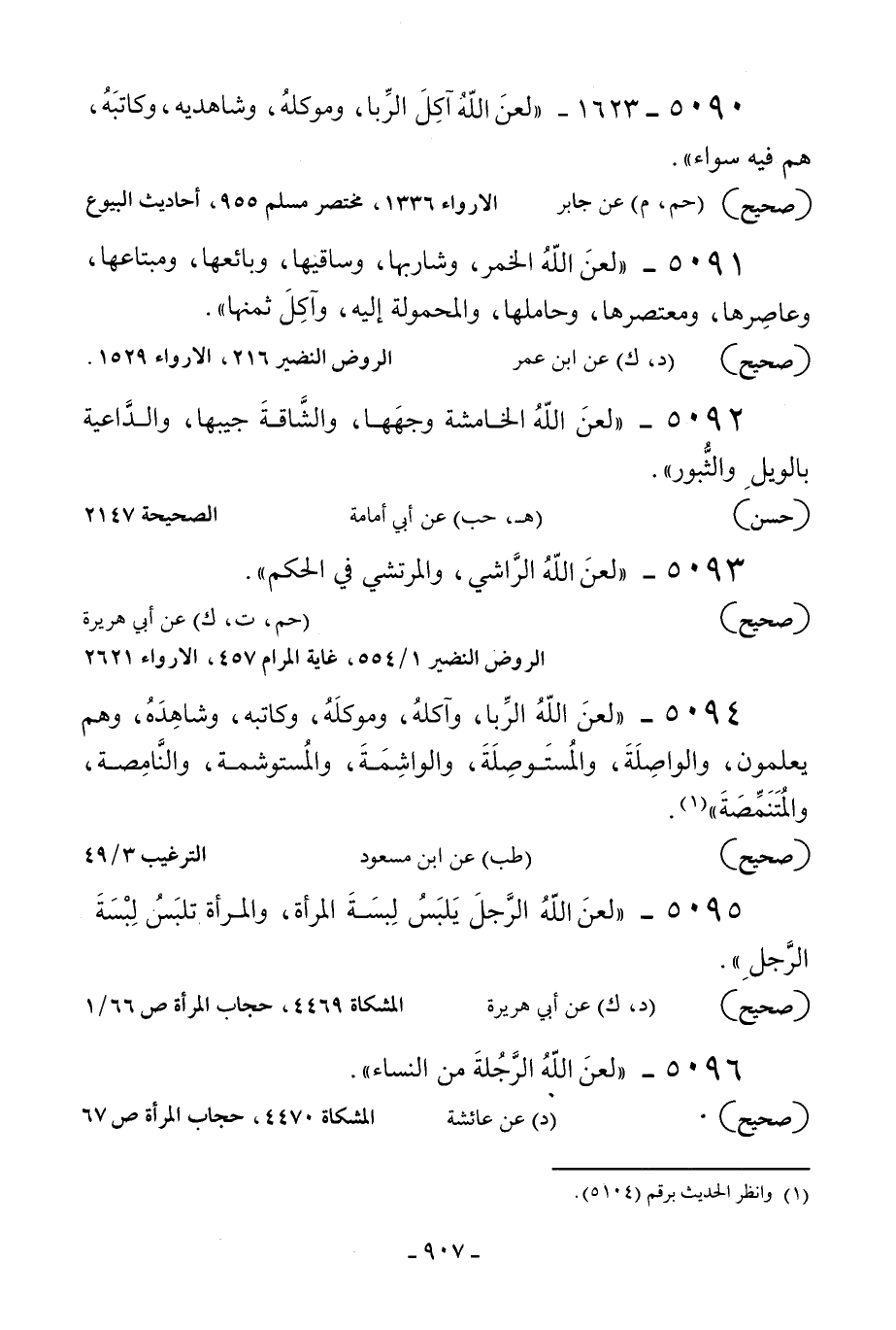 5090 - 1623 - «لعن الله آكل الربا وموكله وشاهديه وكاتبه هم فيه سواء» .