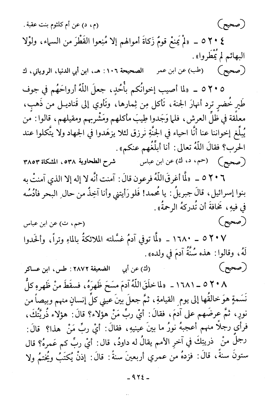 5204 - «لم يمنع قوم زكاة أموالهم إلا منعوا القطر من السماء ولولا البهائم لم يمطروا» .