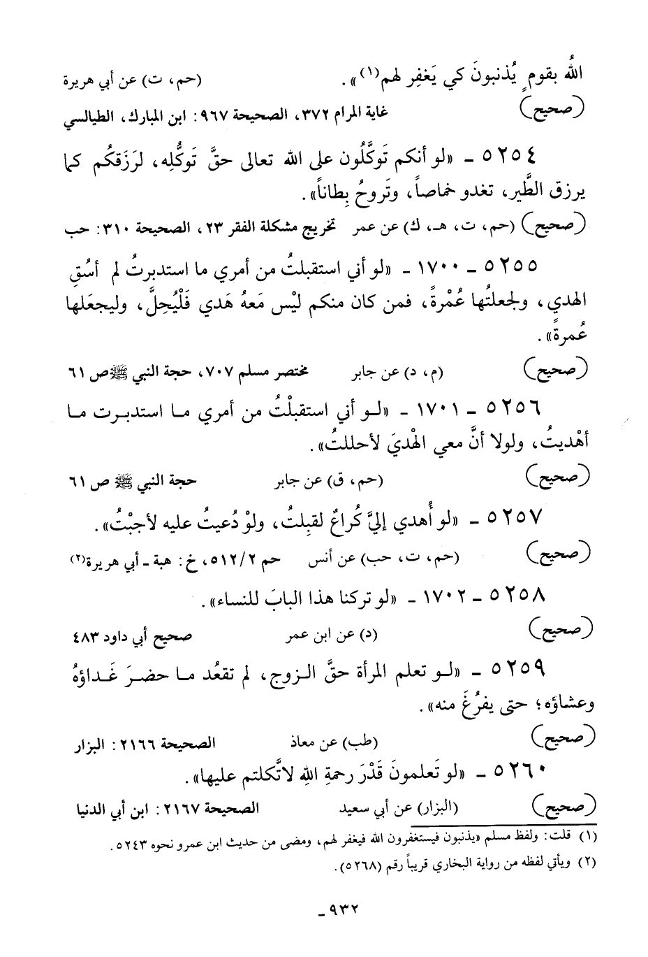 5254 - «لو أنكم توكلون على الله تعالى حق توكله لرزقكم كما يرزق الطير تغدوخماصا وتروح بطانا» .