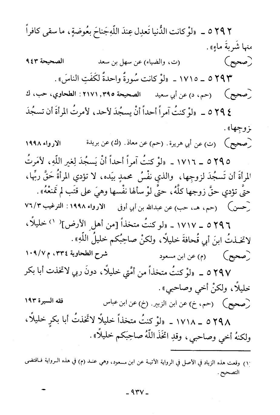 5296 - 1717 - «لوكنت متخذا من أهل الأرض1 خليلا لاتخذت ابن أبي قحافة خليلا ولكن صاحبكم خليل الله» .