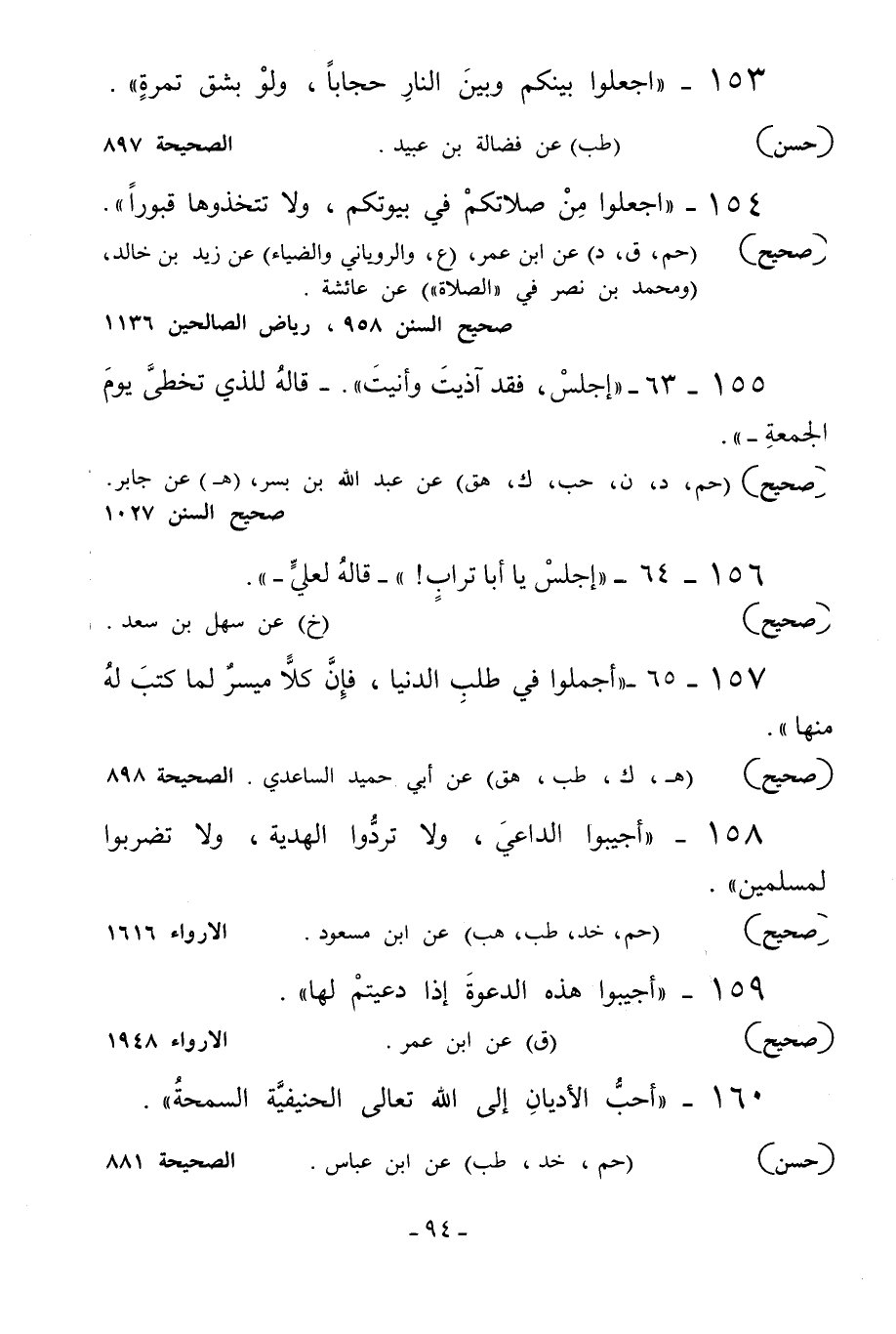 154 - «اجعلوا من صلاتكم في بيوتكم ولا تتخذوها قبورا» .