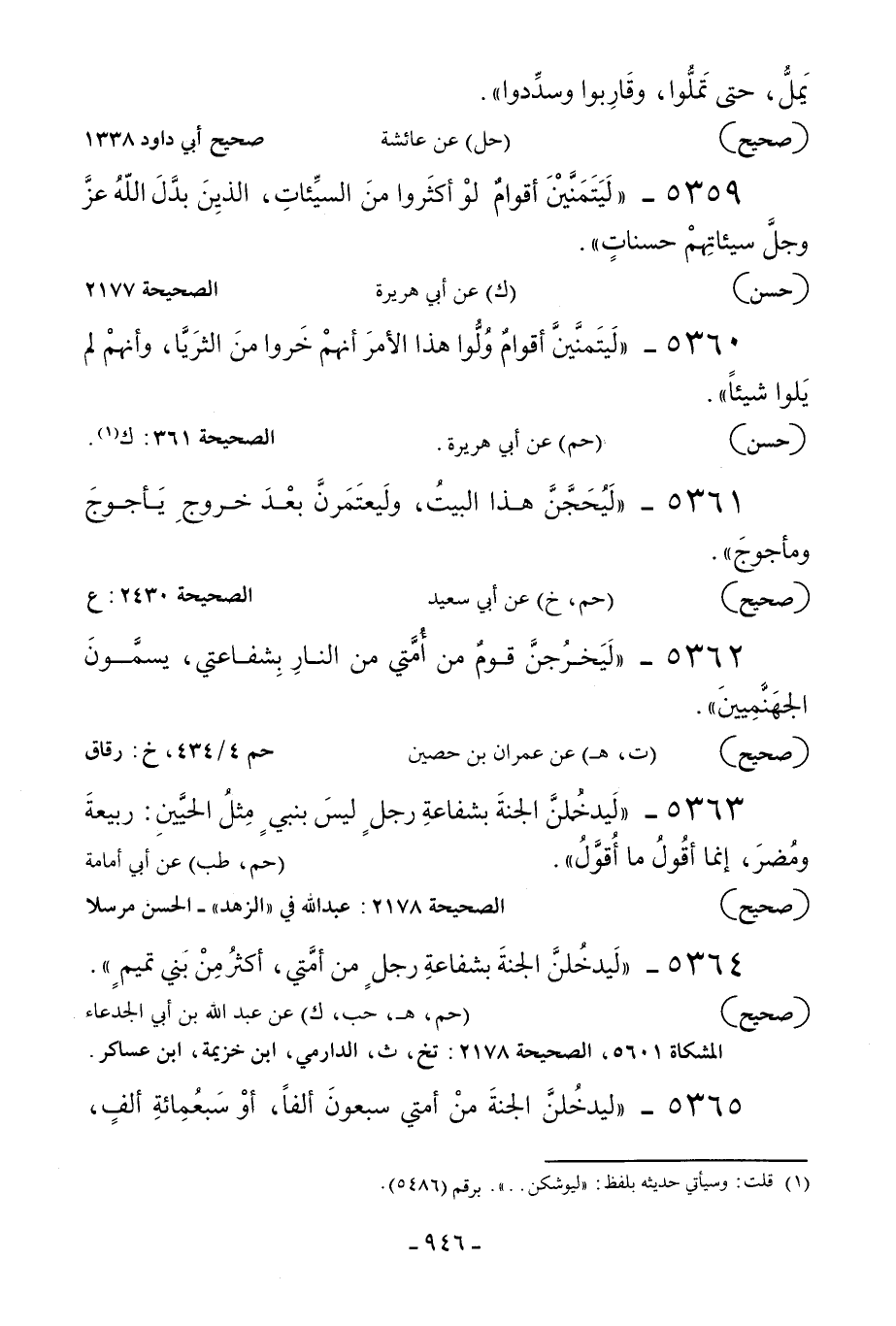 5362 - «ليخرجن قوم من أمتي من النار بشفاعتي يسمون الجهنميين» .