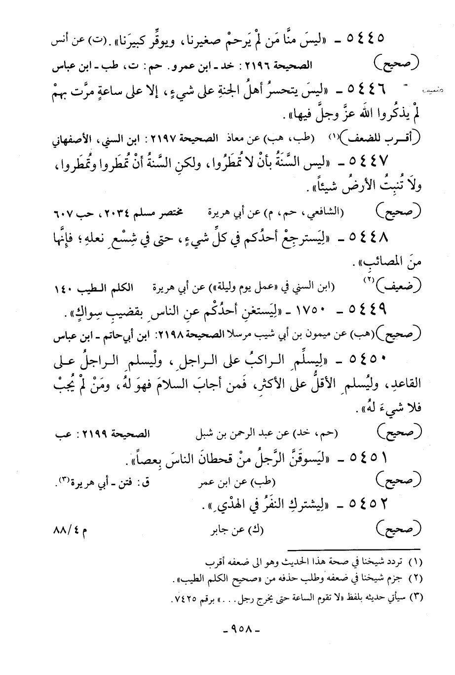(أقرب للضعف) 1 [طب هب] عن معاذ". الصحيحة 2197: ابن السني، الأصفهاني.