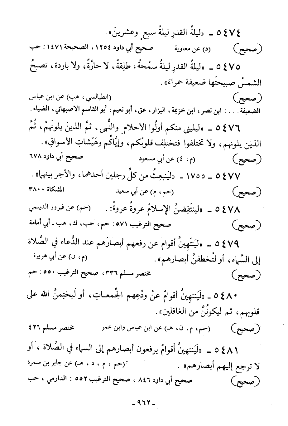 5475 - «ليلة القدر ليلة سمحة طلقة لا حارة ولا باردة تصبح الشمس صبيحتها ضعيفة حمراء» .