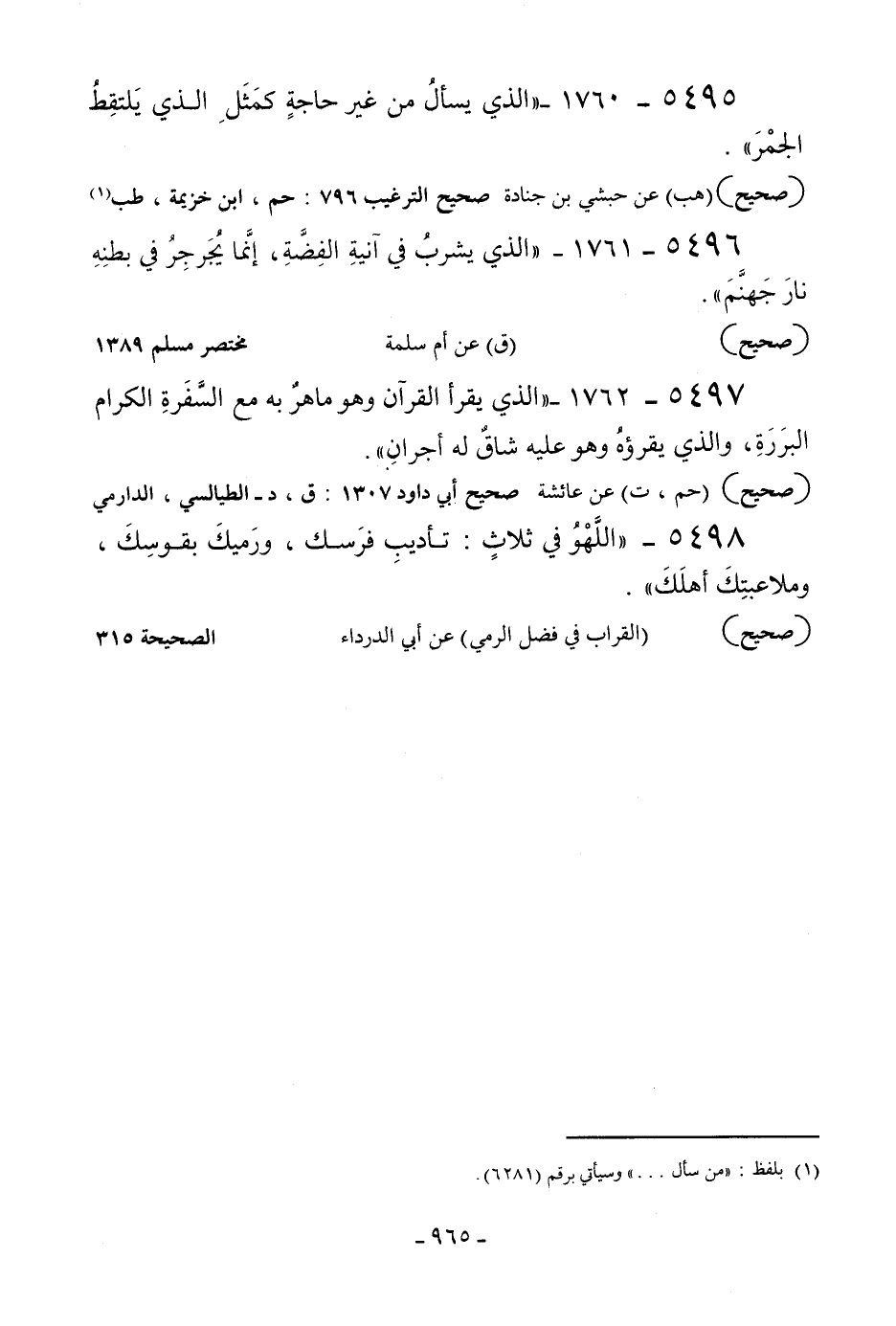5496 - 1761 - «الذي يشرب في آنية الفضة إنما يجرجر في بطنه نار جهنم» .