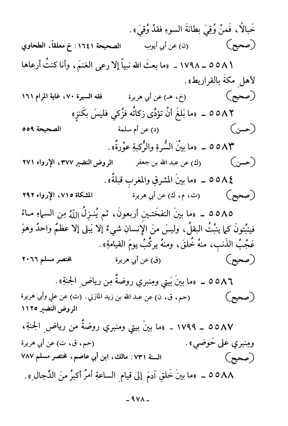 5587 - 1799 - «ما بين بيتي ومنبري روضة من رياض الجنة ومنبري على حوضي» ... [حم ق ت] عن أبي هريرة.