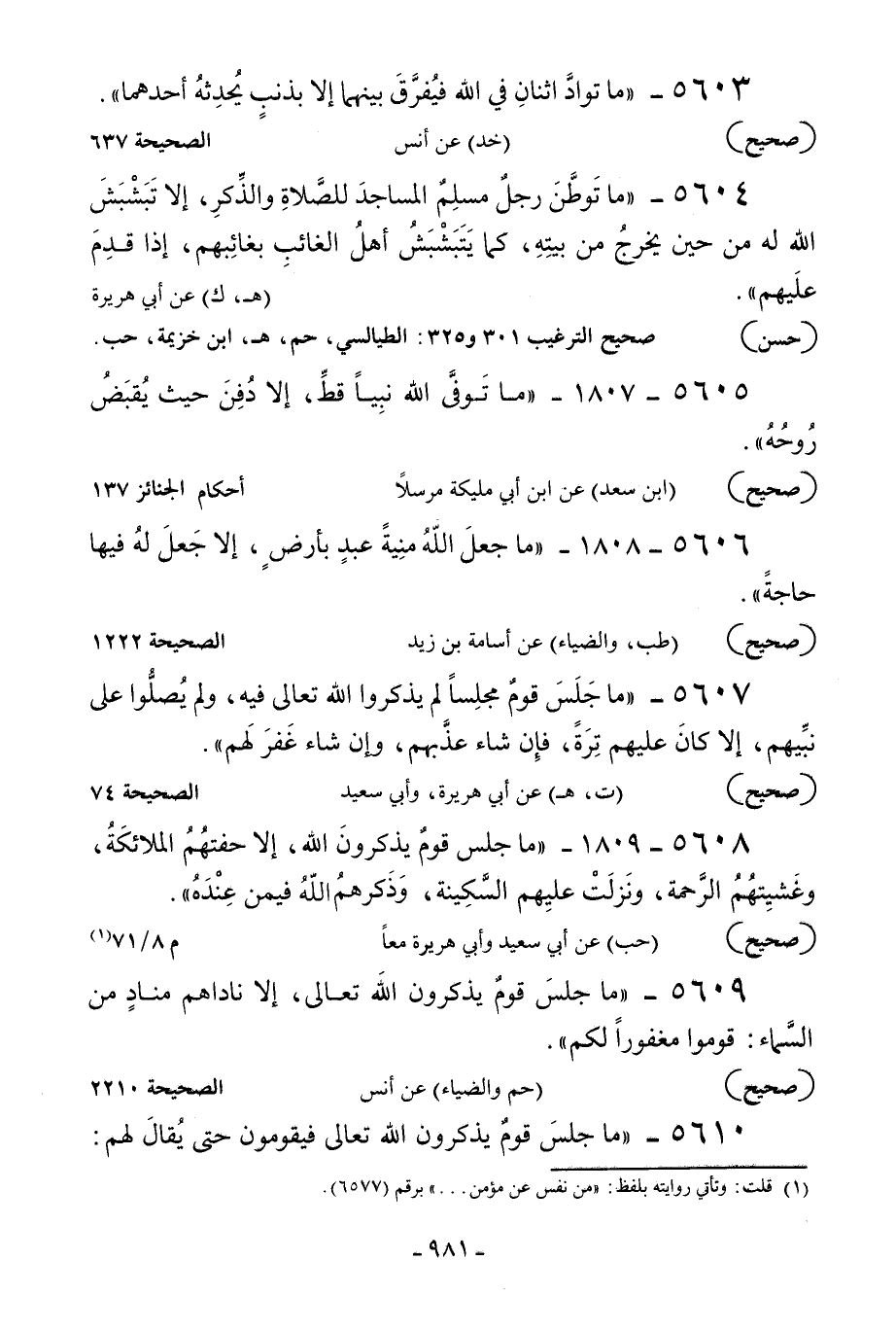 5609 - «ما جلس قوم يذكرون الله تعالى إلا ناداهم مناد من السماء: قوموا مغفورا لكم» .