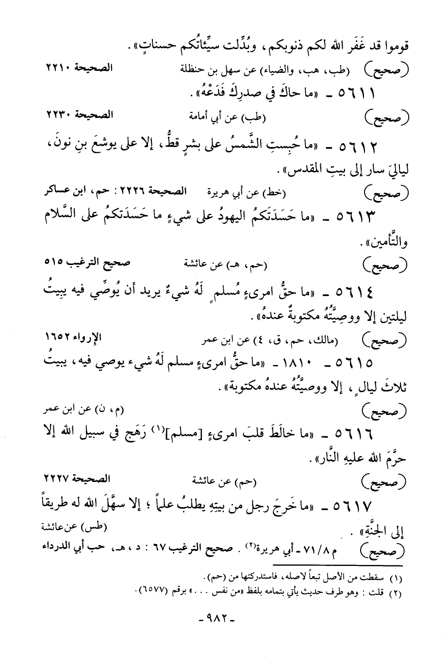 5615 - 1810 - «ما حق امرئ مسلم له شيء يوصي فيه يبيت ثلاث ليال إلا ووصيته عنده مكتوبة» .
