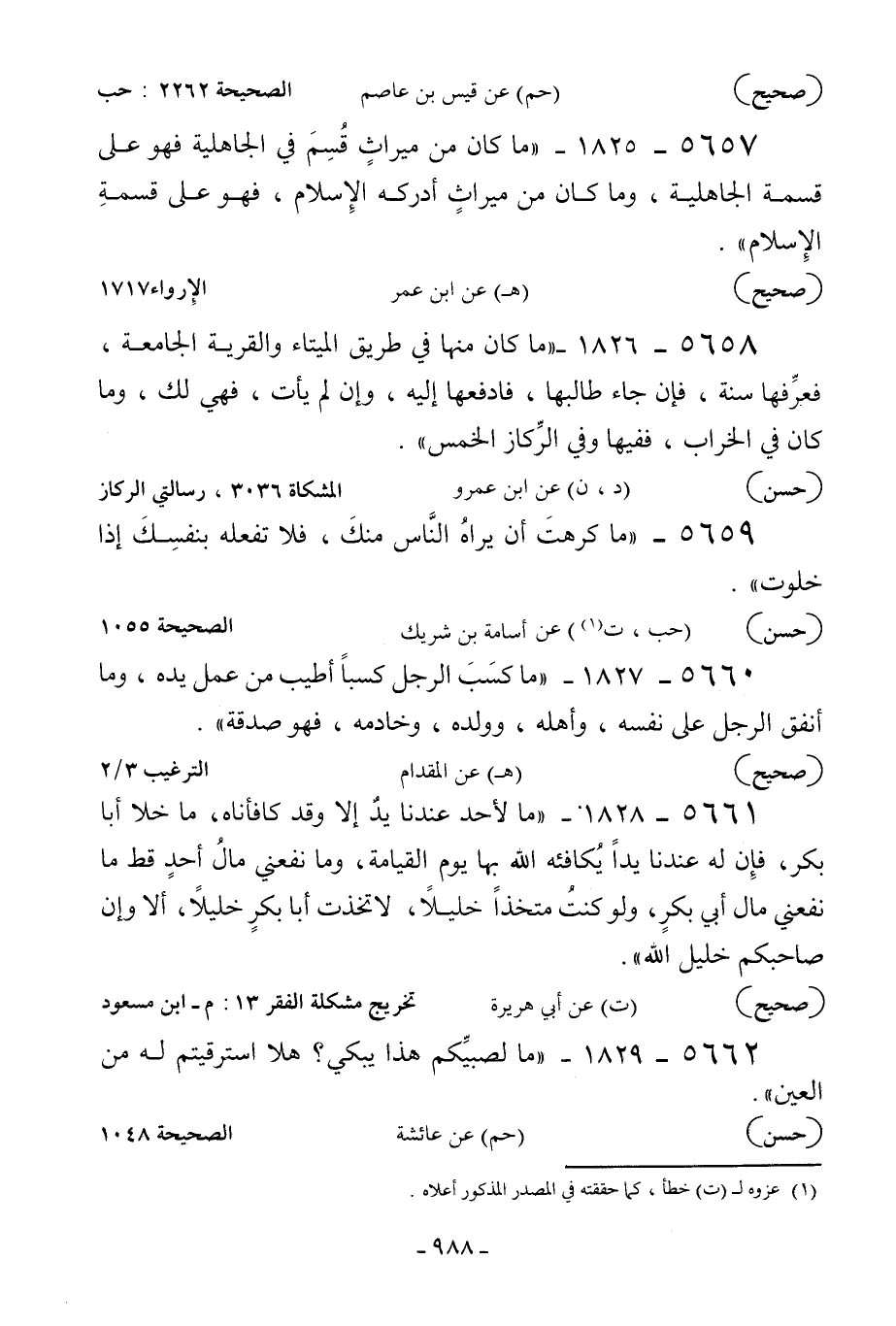 5657 - 1825 - «ما كان من ميراث قسم في الجاهلية فهو على قسمة الجاهلية وما كان من ميراث أدركه الإسلام فهو على قسمة الإسلام» .