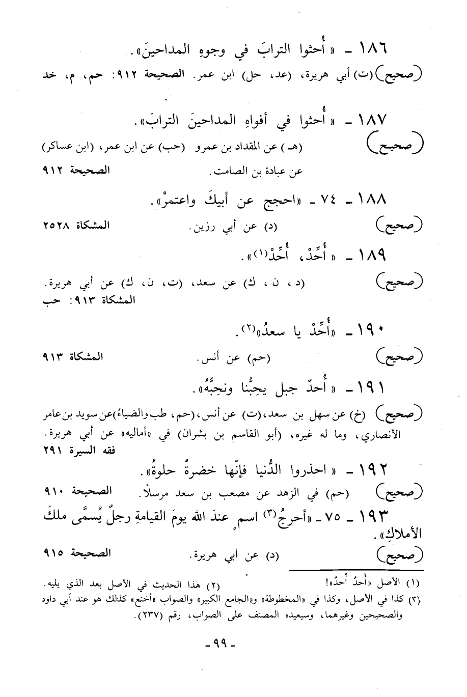 (صحيح) ... [ت] عن أبي هريرة [عد حل] عن ابن عمر. الصحيحة 912: حم, م, خد.