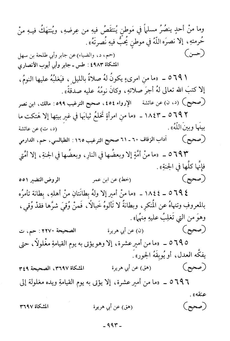 5696 - «ما من أمير عشرة إلا يؤتى به يوم القيامة ويده مغلولة إلى عنقه» .