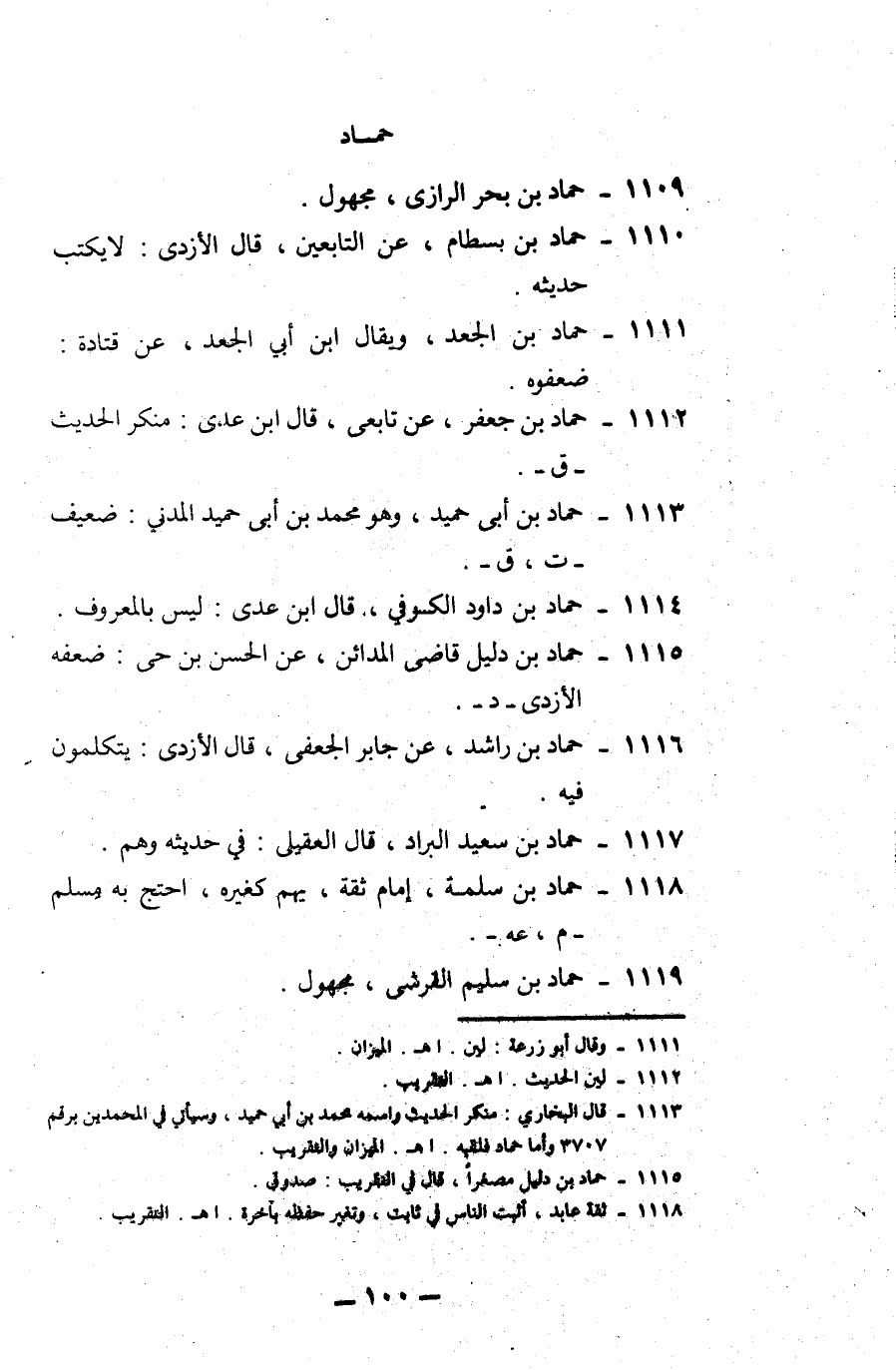 1110 - حماد بن بسطام: عن التابعين، قال الأزدي: لا يكتب حديثه.