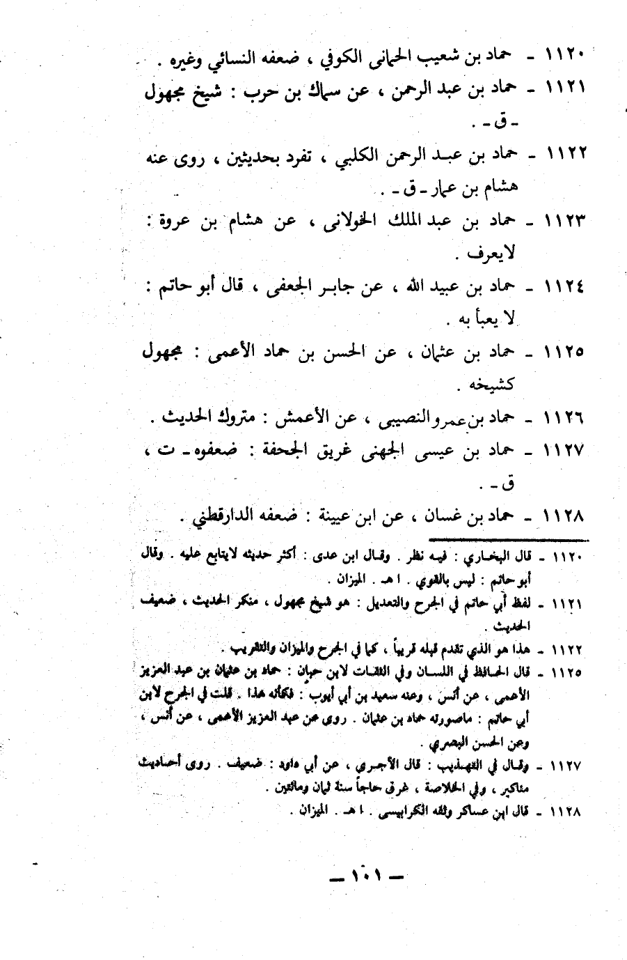 1120 - حماد بن شعيب الحماني الكوفي: ضعفه النسائي وغيره.