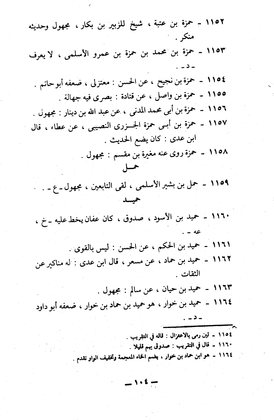 1164 - حميد بن خوار. هو حميد بن حماد بن خوار: ضعفه أبو داود. -د-