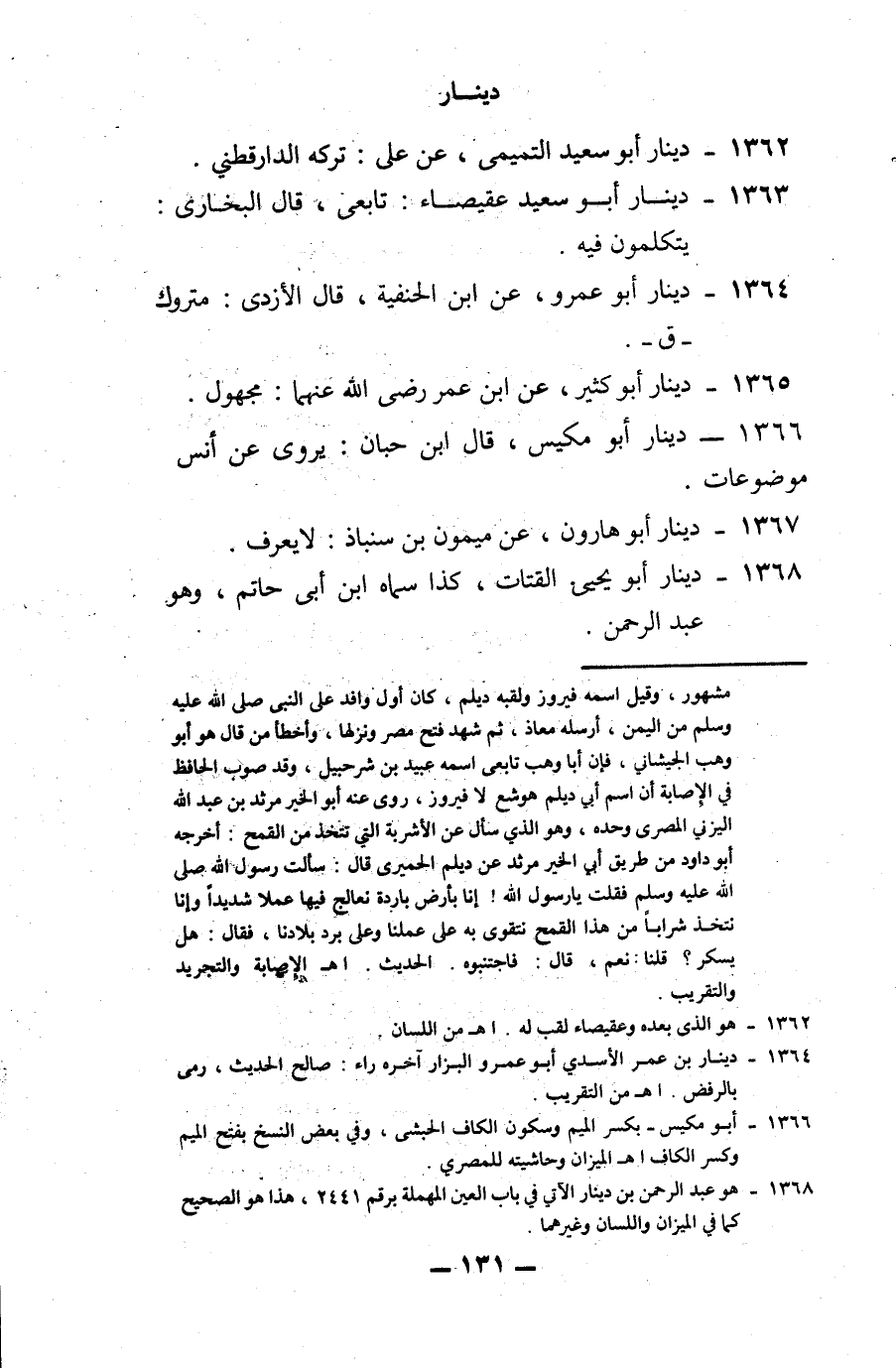 1368 - دينار، أبو يحيى القتات: كذا سماه ابن أبي حاتم، وهو عبد الرحمن.