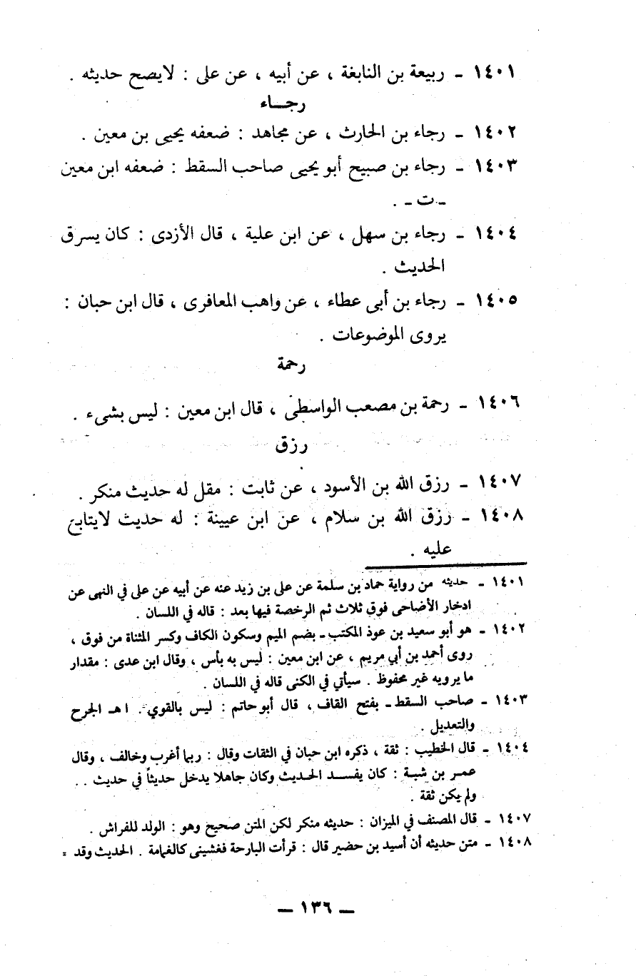 1405 - رجاء بن أبي عطاء: عن واهب المعافري: قال ابن حبان: يروي الموضوعات.