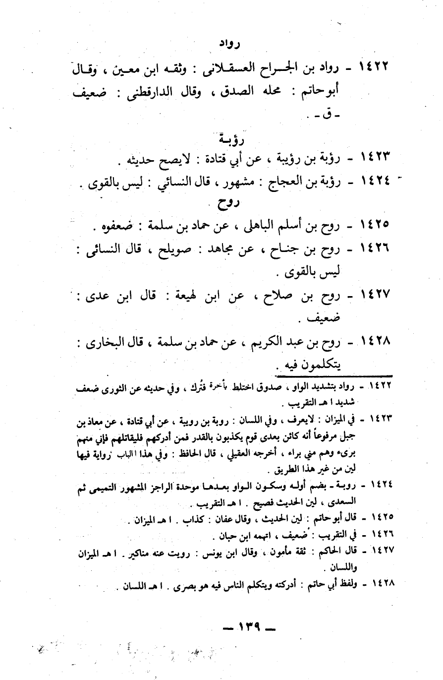 1426 - روح بن جناح: عن مجاهد، صويلح، قال النسائي: ليس بالقوي.