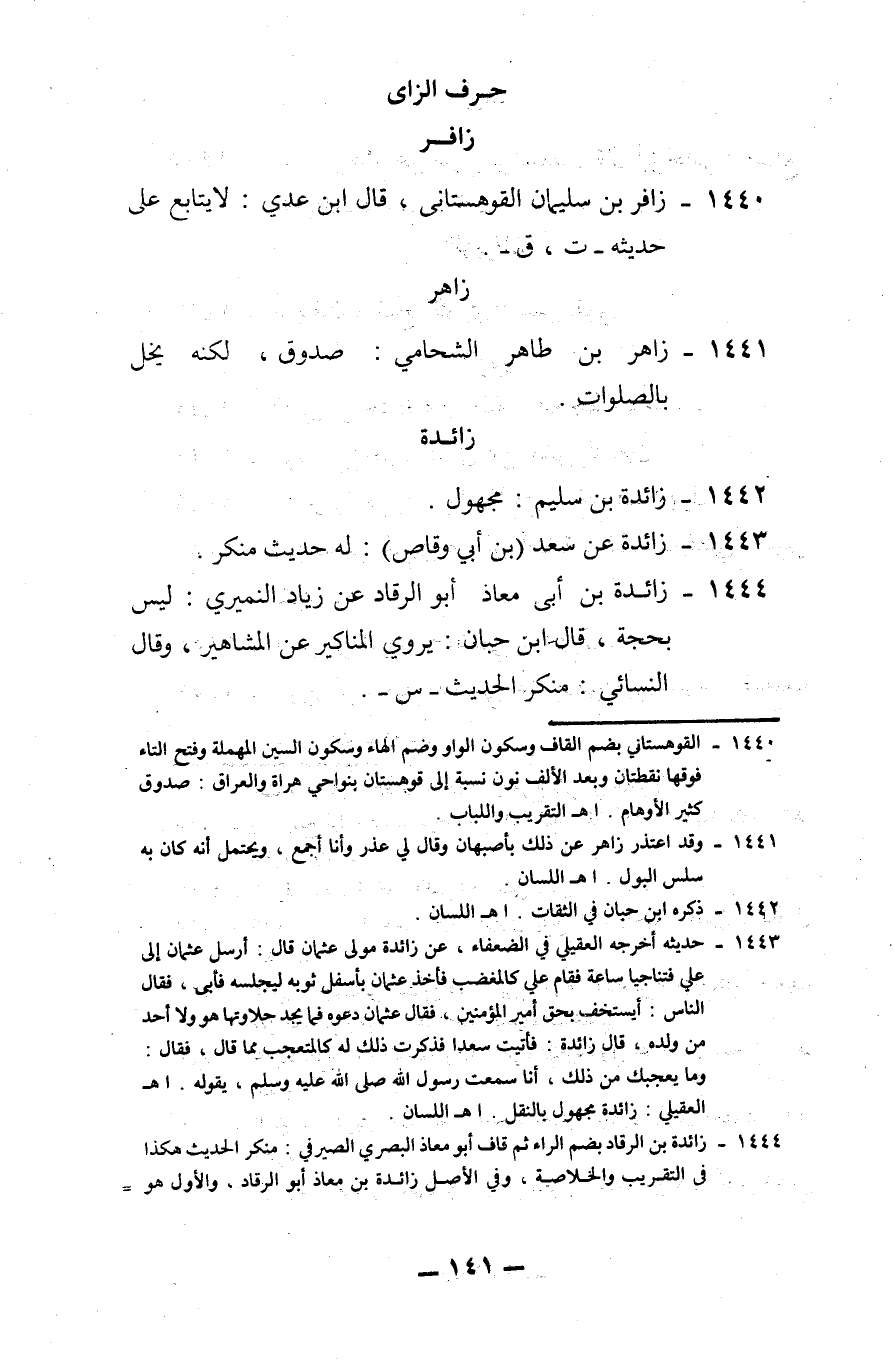 1441 - زاهر بن طاهر الشحامي: صدوق، لكنه يخل بالصلوات.