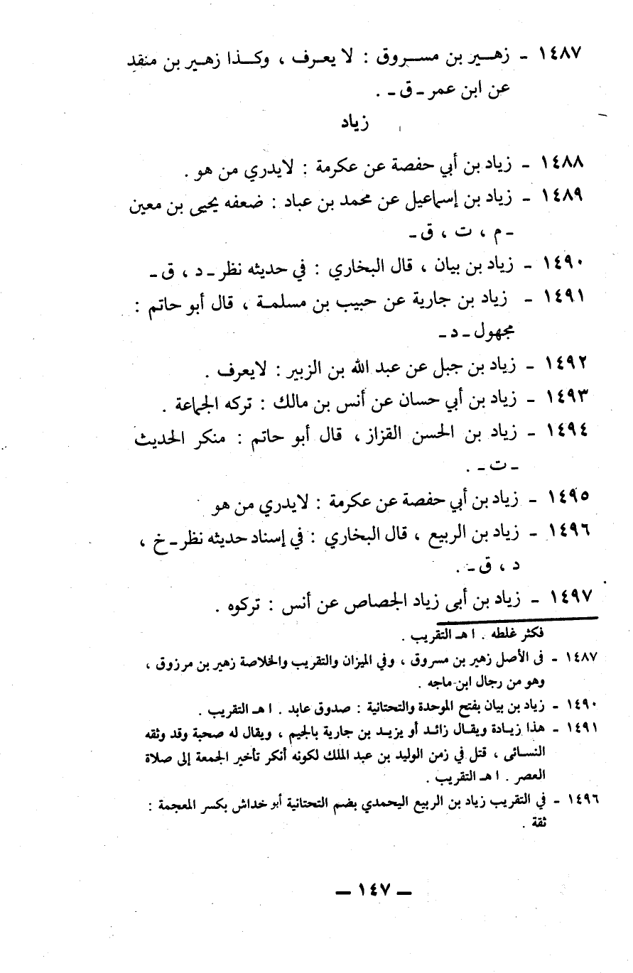 1491 - زياد بن جارية: عن حبيب بن مسلمة، قال أبو حاتم: مجهول. -د-
