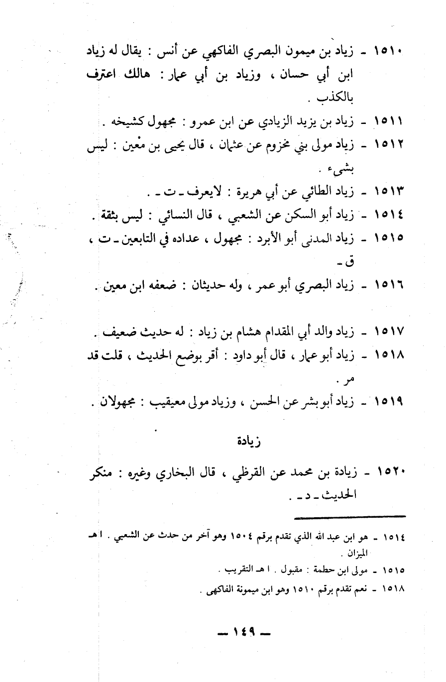 1516 - زياد البصري، أبو عمر: وله حديثان، ضعفه ابن معين.