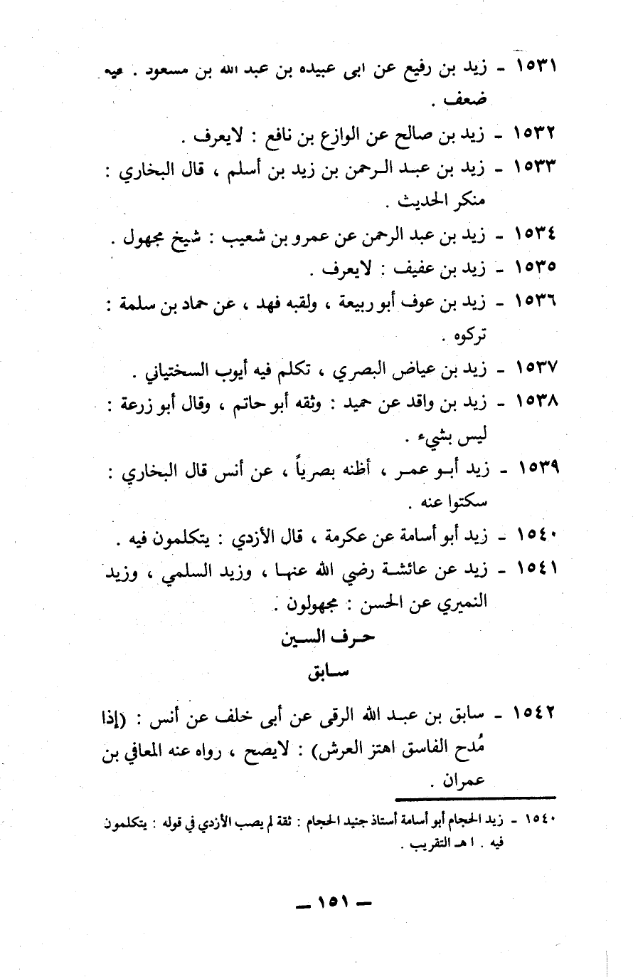 1541 - زيد: عن عائشة رضي الله عنها، وزيد السلمي، وزيد النميري عن الحسن: مجهولون.