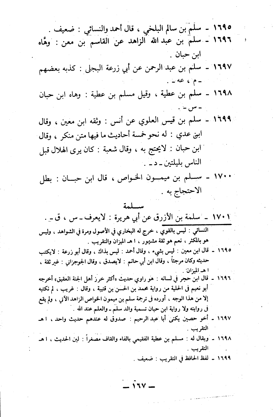 1700 - سلم بن ميمون الخواص: قال ابن حبان: بطل الاحتجاج به.