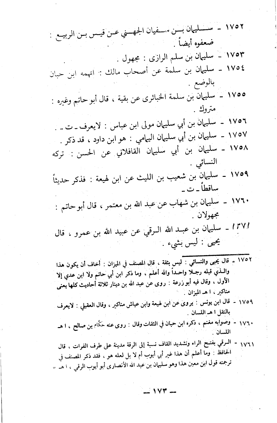 1754 - سليمان بن سلمة: عن أصحاب مالك، اتهمه ابن حبان بالوضع.