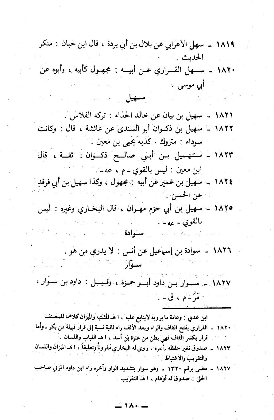 1822 - سهيل بن ذكوان، أبو السندي: عن عائشة، قال: وكانت سوداء، متروك، كذبه يحيى بن معين.