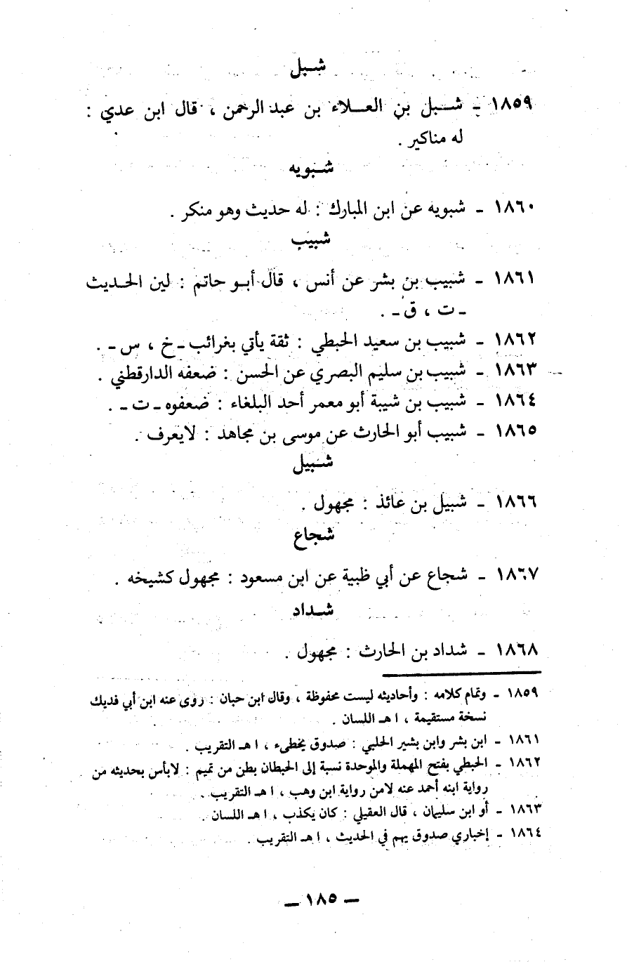 1859 - شبل بن العلاء بن عبد الرحمن: قال ابن عدي: له مناكير.