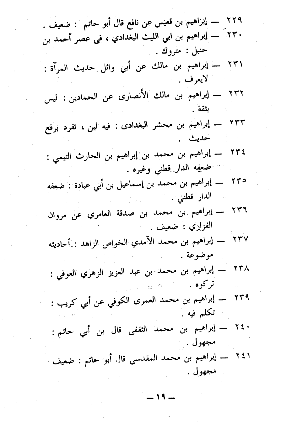 241 - إبراهيم بن محمد المقدسي: قال أبو حاتم: ضعيف، مجهول.