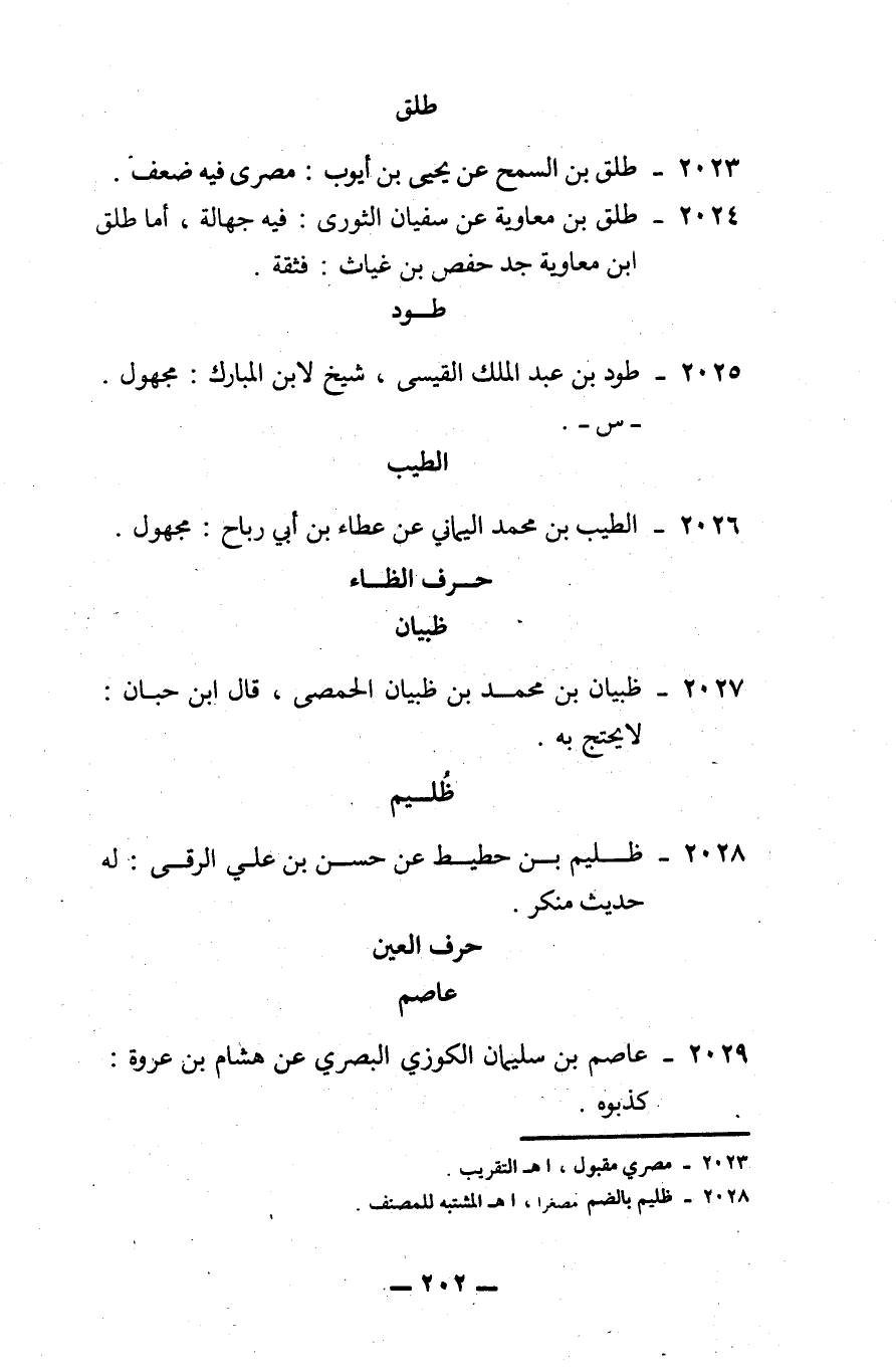 2024 - طلق بن معاوية: عن سفيان الثوري، فيه جهالة، أما طلق بن معاوية جد حفص بن غياث فثقة.