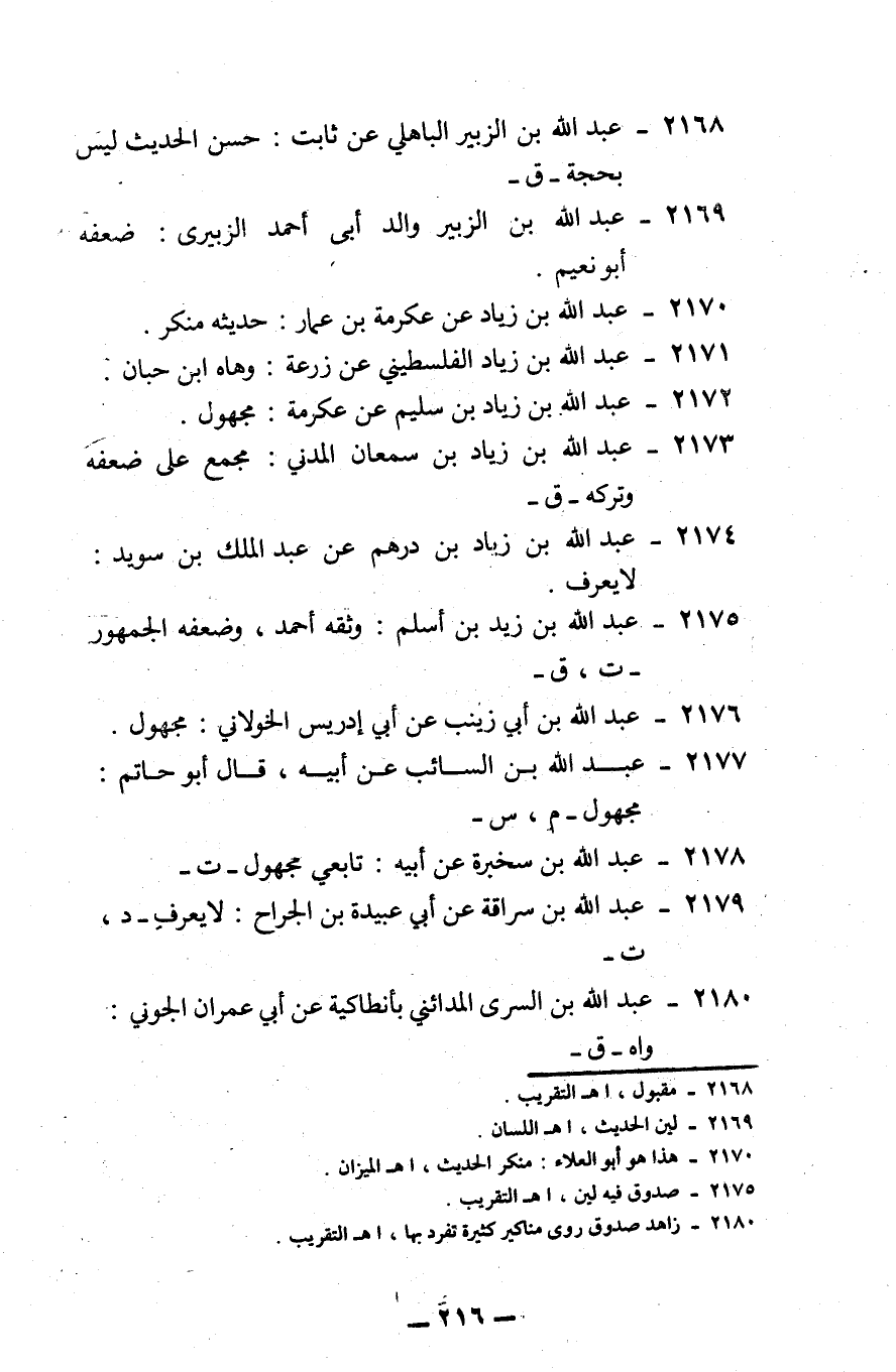 2168 - عبد الله بن الزبير الباهلي: عن ثابت، حسن الحديث، ليس بحجة. -ق-