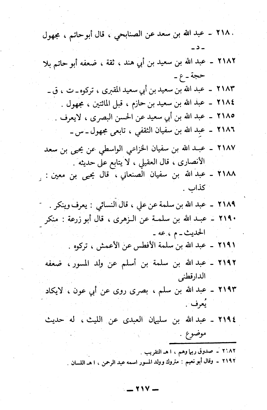 2184 - عبد الله بن سعيد بن حازم. قبل المائتين: مجهول.
