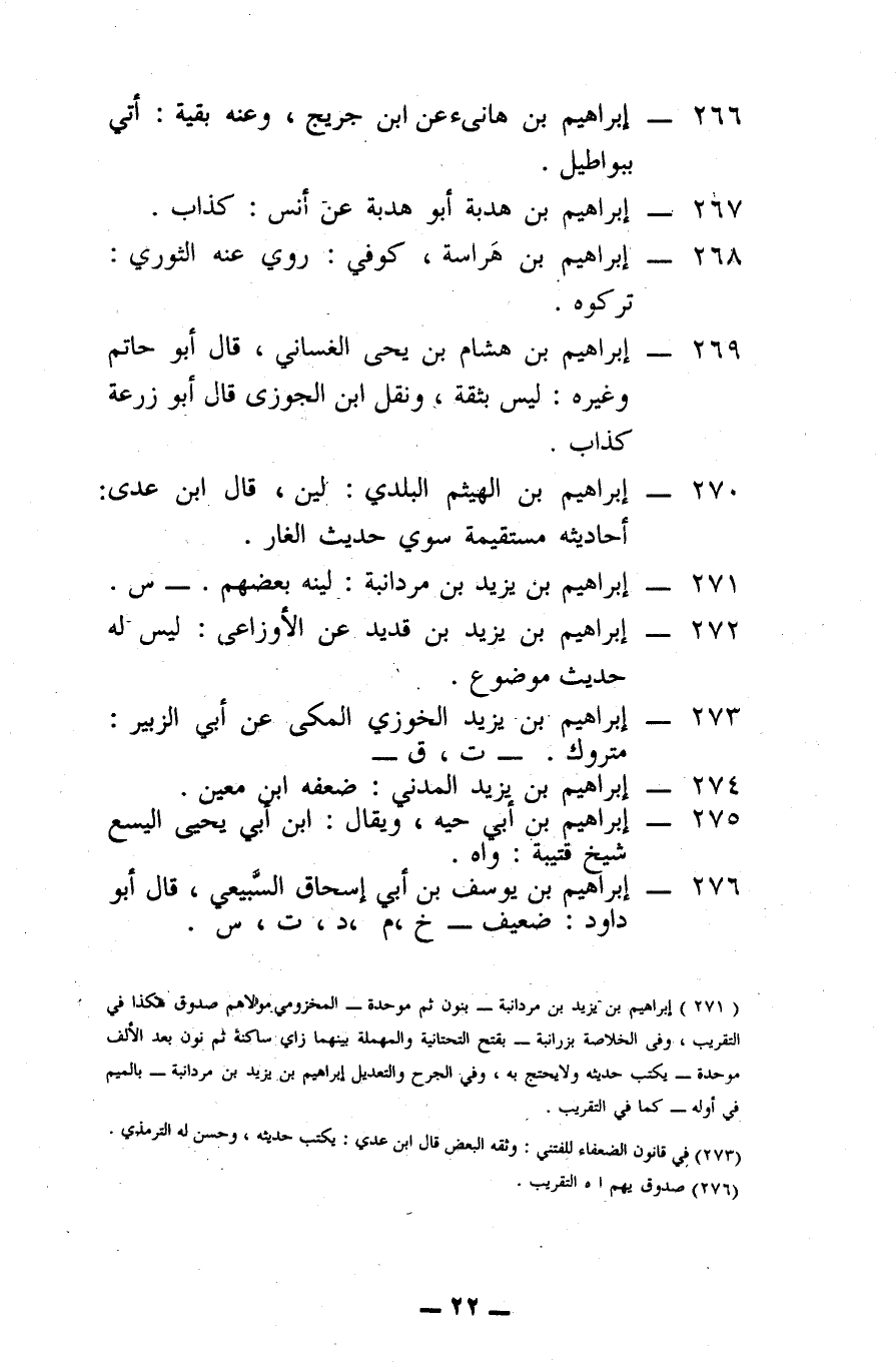 269 - إبراهيم بن هشام بن يحيى الغساني: قال أبو حاتم وغيره، ليس بثقة، ونقل ابن الجوزي قال أبو زرعة: كذاب.