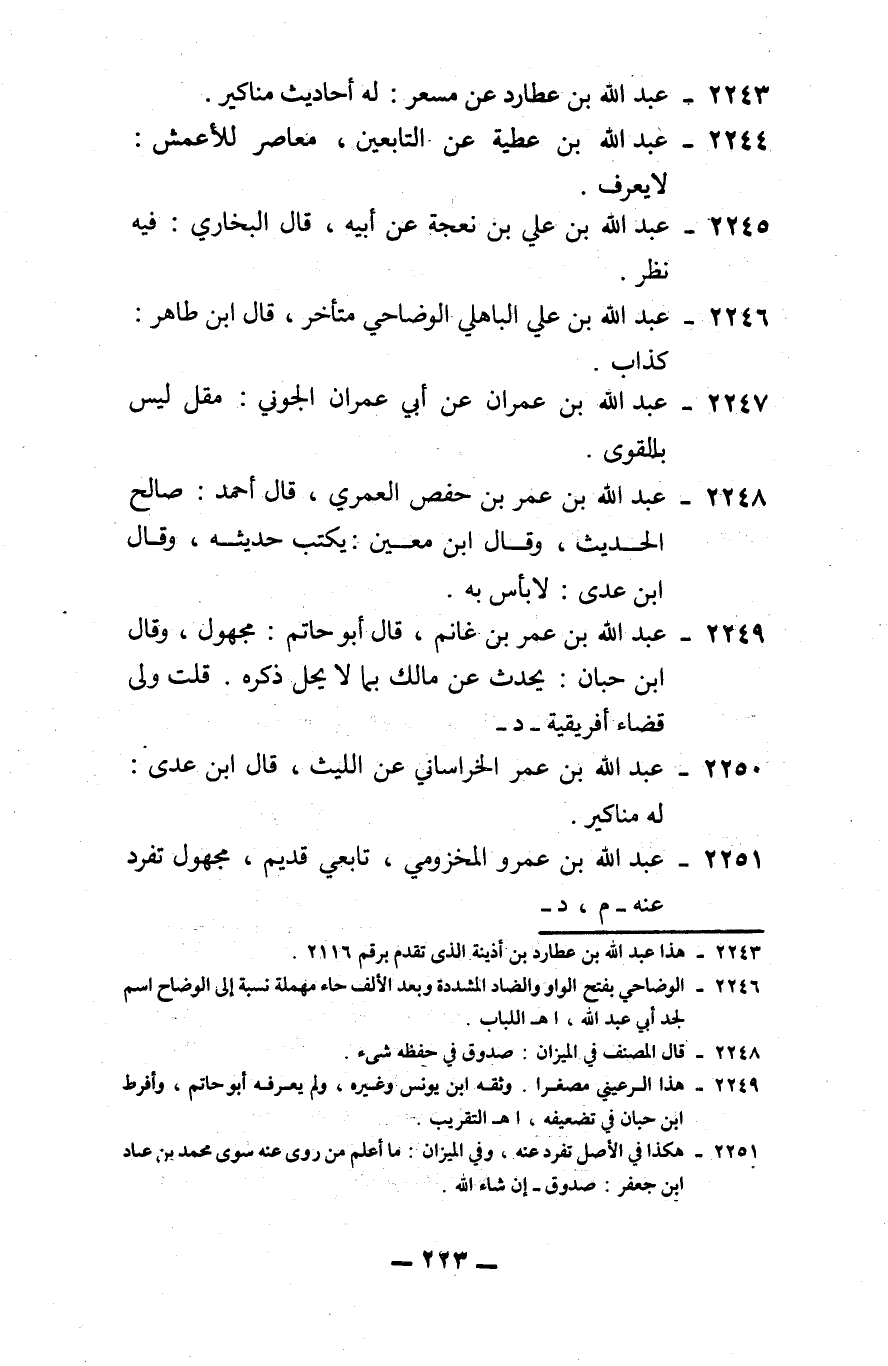 2246 - عبد الله بن علي الباهلي الوضاحي: متأخر، قال ابن طاهر: كذاب.