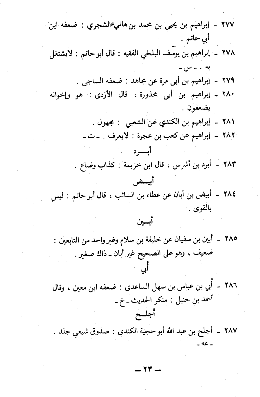 277 - إبراهيم بن يحيى بن محمد بن هانئ الشجري: ضعفه ابن أبي حاتم.