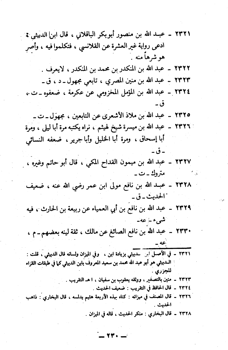 2321 - عبد الله بن منصور، أبو بكر الباقلاني: قال ابن الدبيثي: ادعى رواية غير العشرة عن القلانسي، فتكلموا فيه، وأصر هو شرهاً منه.