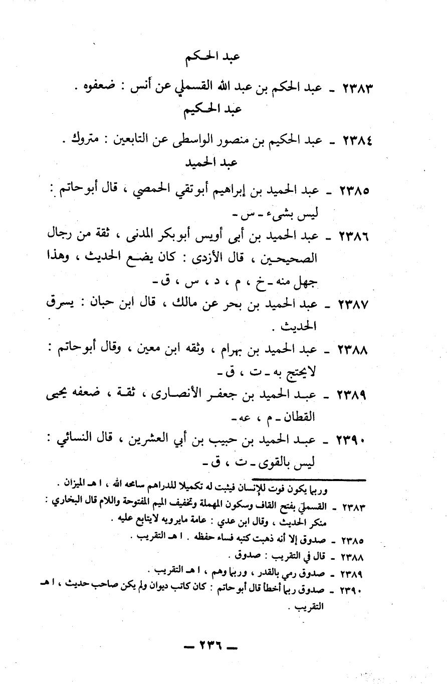 2385 - عبد الحميد بن إبراهيم، أبو تقي الحمصي: قال أبو حاتم: ليس بشيء. -س-