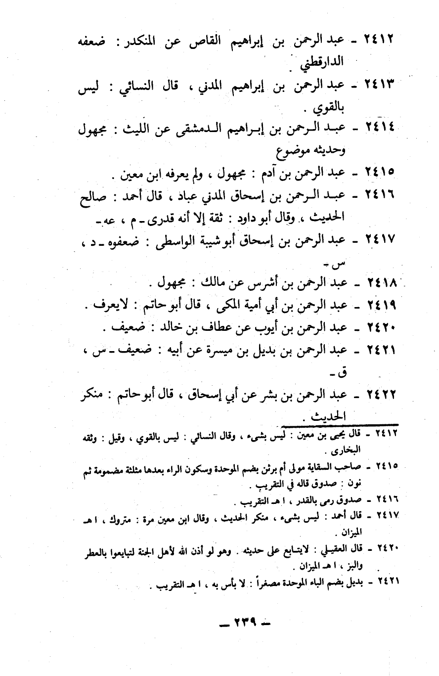 2413 - عبد الرحمن بن إبراهيم المدني: قال النسائي: ليس بالقوي.