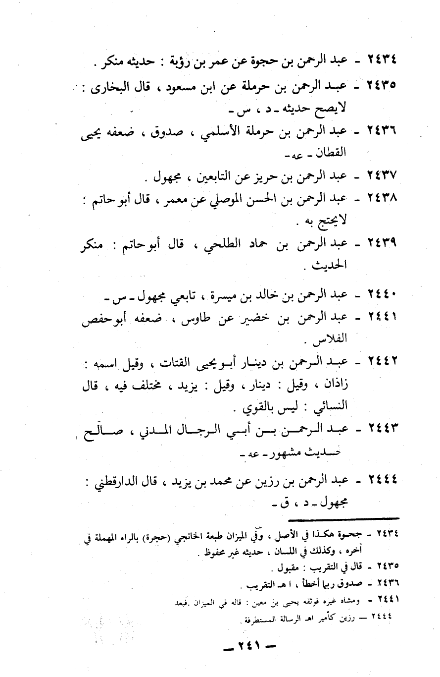 2441 - عبد الرحمن بن خضير: عن طاوس، ضعفه أبو حفص الفلاس.