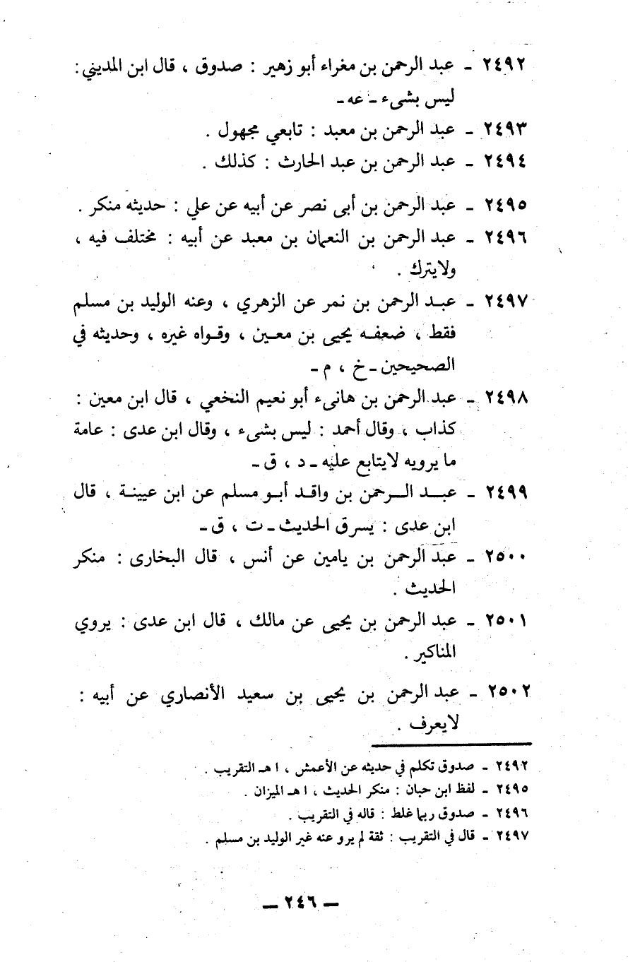 2492 - عبد الرحمن بن مغراء، أبو زهير: صدوق، قال ابن المديني: ليس بشيء. -عه-