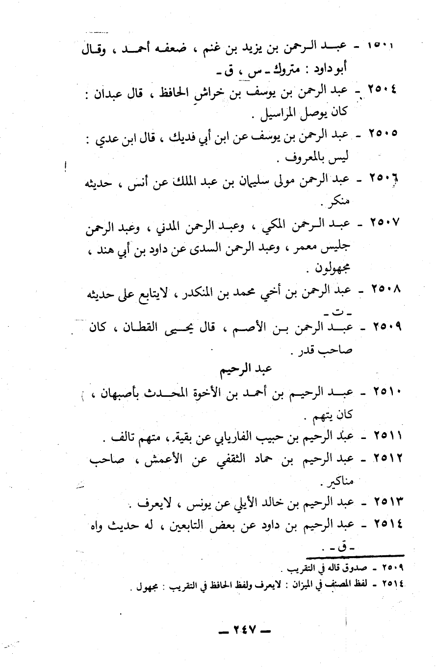 2504 - عبد الرحمن بن يوسف بن خراش الحافظ: قال عبدان: كان يوصل المراسيل.
