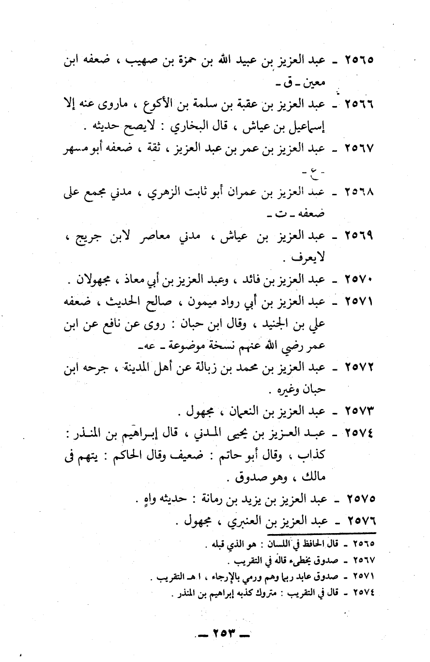 2565 - عبد العزيز بن عبيد الله بن حمزة بن صهيب: ضعفه ابن معين. -ق-