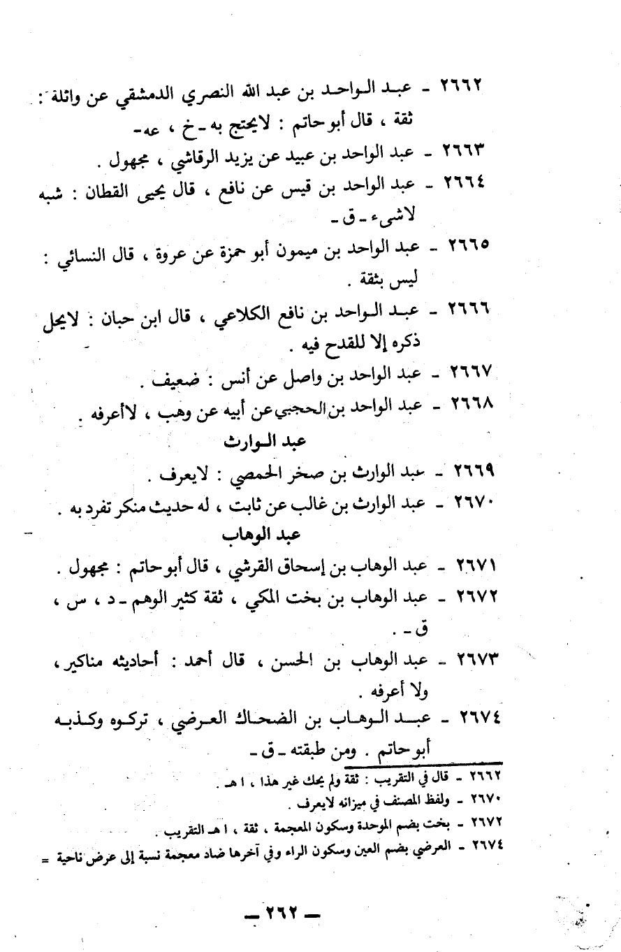 2666 - عبد الواحد بن نافع الكلاعي: قال ابن حبان: لا يحل ذكره إلا للقدح فيه.