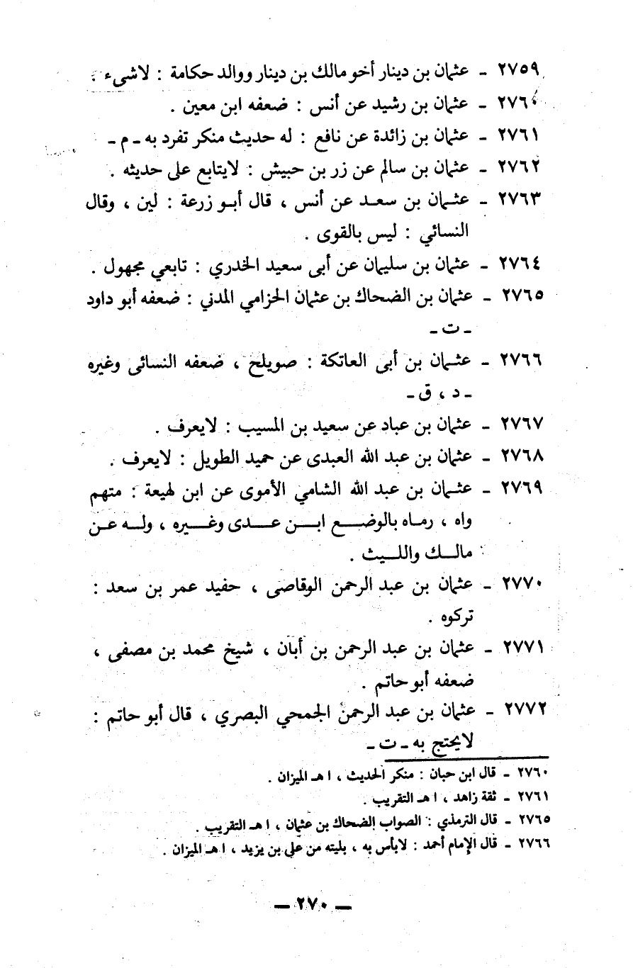 2771 - عثمان بن عبد الرحمن بن أبان: شيخ محمد بن مصفى، ضعفه أبو حاتم.