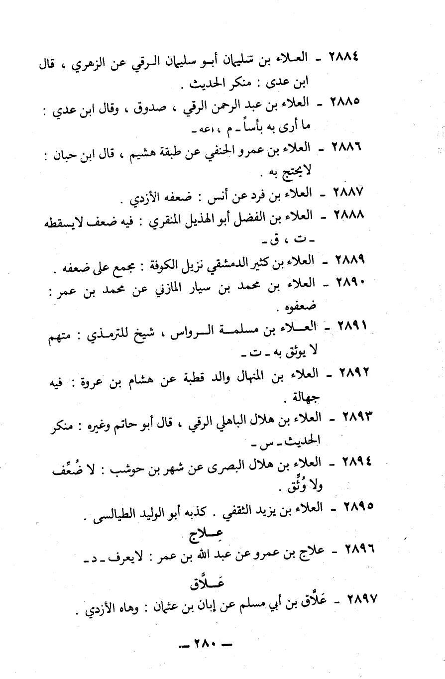 2897 - علاق بن أبي مسلم: عن أبان بن عثمان، وهاه الأزدي.