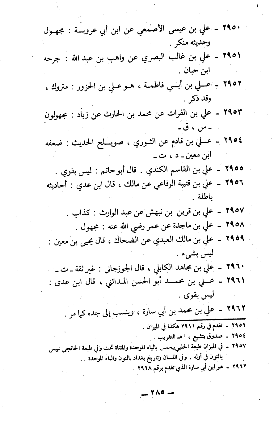 2961 - علي بن محمد، أبو الحسن المدائني: قال ابن عدي: ليس بقوي.