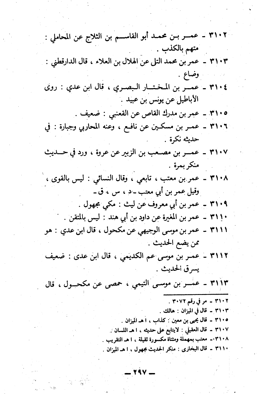 3111 - عمر بن موسى الوجيهي: عن مكحول، قال ابن عدي: هو ممن يضع الحديث.