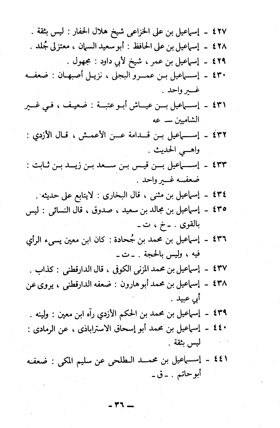 430 - إسماعيل بن عمرو البجلي. نزيل أصبهان: ضعفه غير واحد.