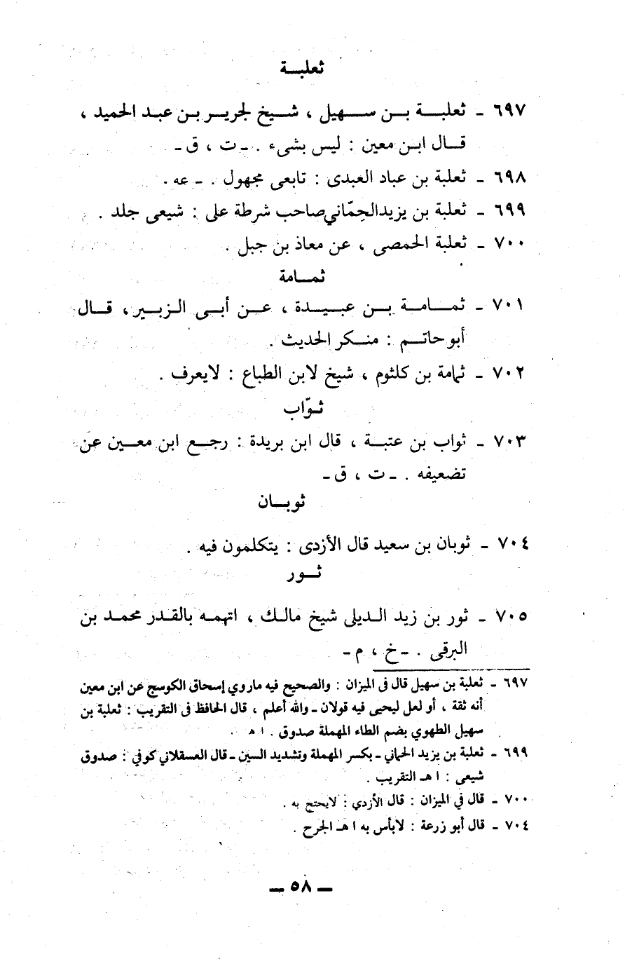705 - ثور بن زيد الديلي: شيخ مالك، اتهمه بالقدر محمد بن البرقي. -خ، م-